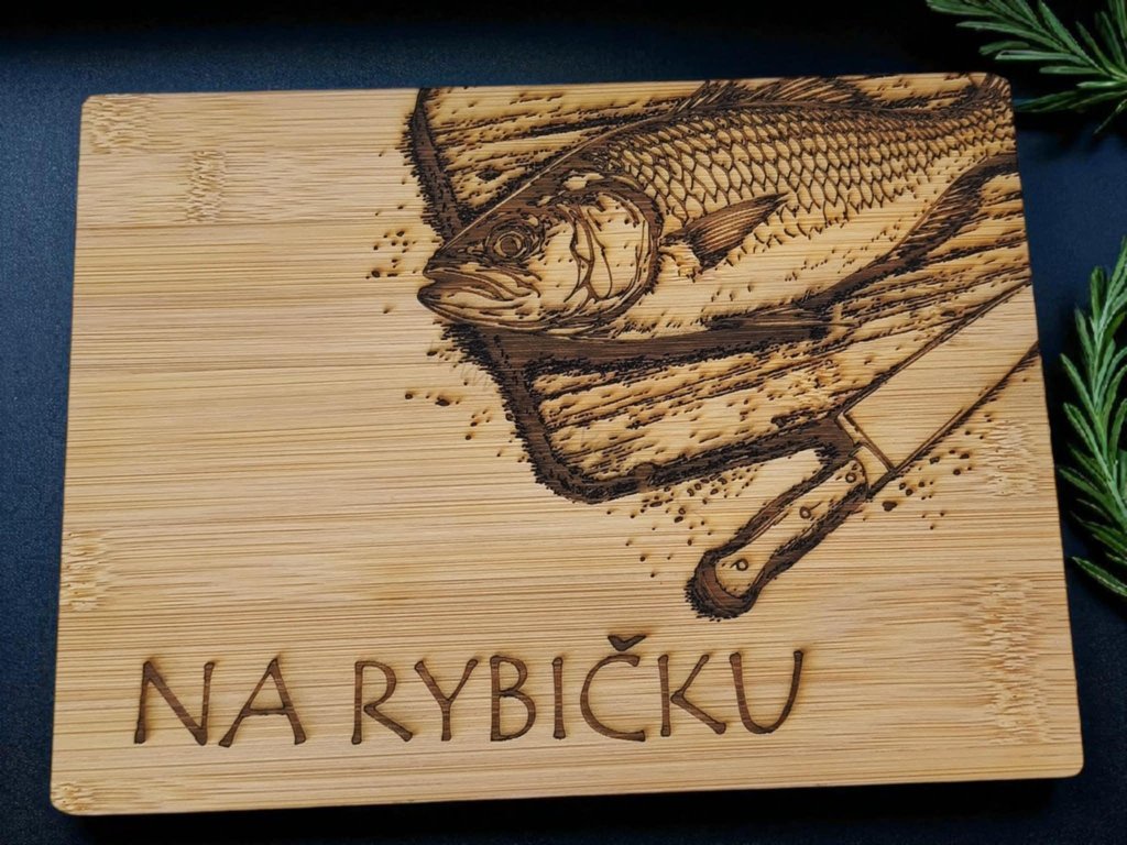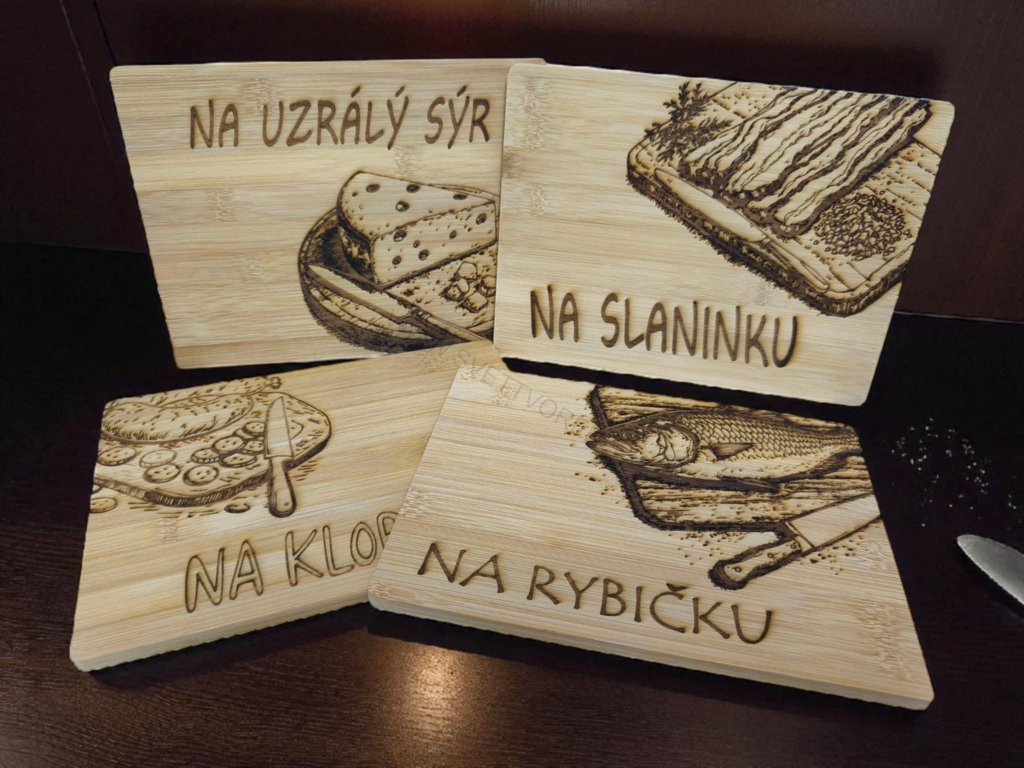 Gravírované bambusové servírovací prkénko pro různé příležitosti.