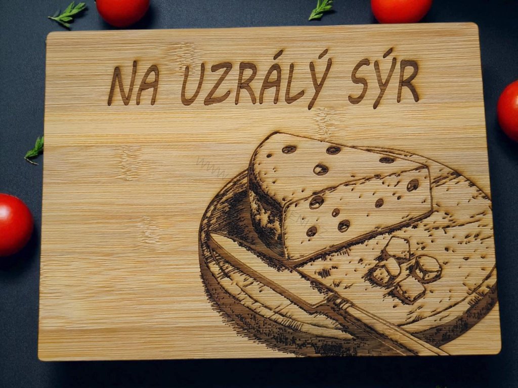 Gravírované bambusové servírovací prkénko pro různé příležitosti.