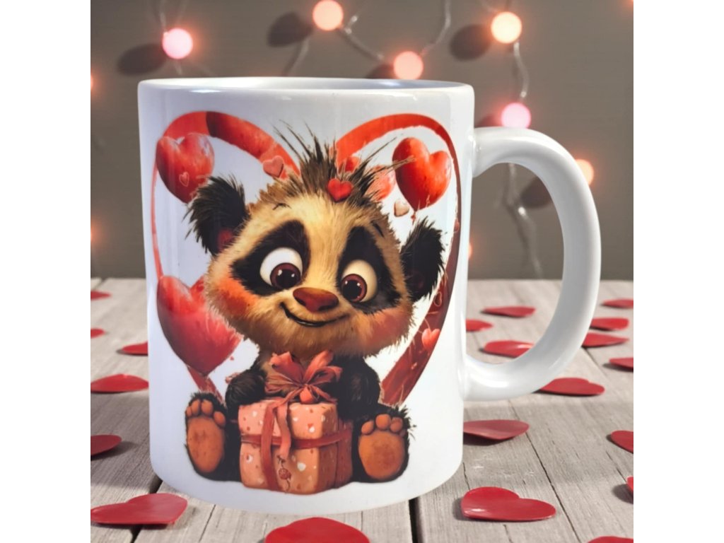 Roztomilý hrneček s pandou a srdíčky. Přesně tento krásný hrníček vyjádří přesně to, co cítíte. Ideální jako dárek k narozeninám, svátku či na Valentýna ... nebo prostě jen tak, z lásky