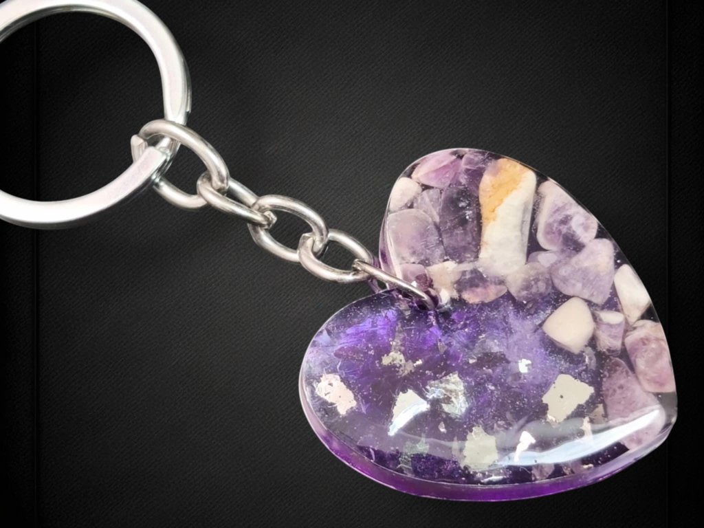 Klíčenka srdíčko s přírodními kameny ... malý orgonit, který můžete mít stále u sebe.
