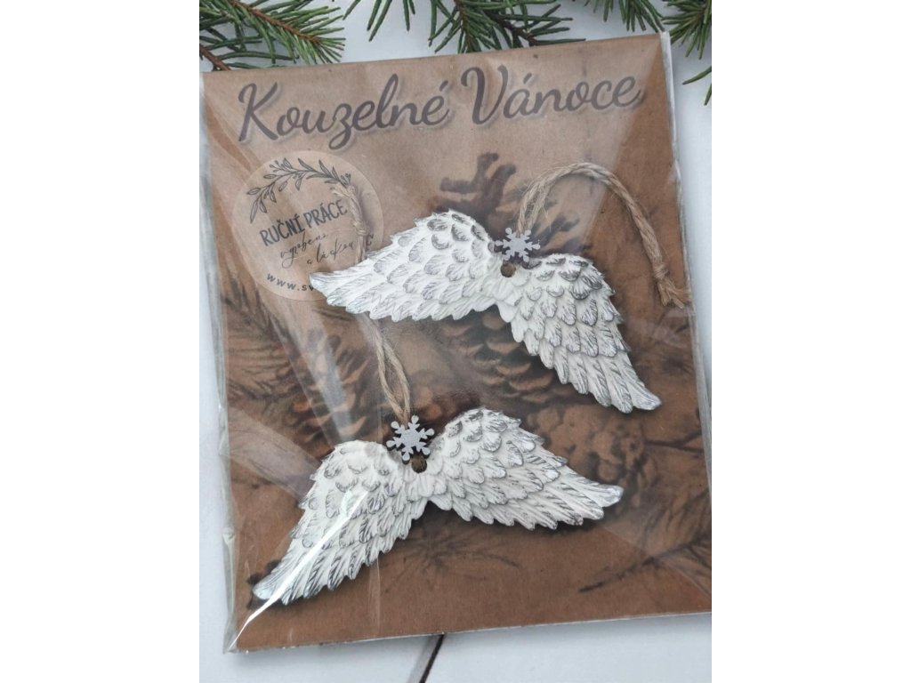 Vánoční ozdoba andělská křídla 2ks STŘÍBRNÁ