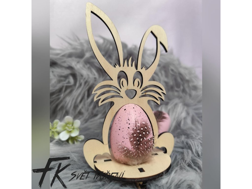 Dřevěný králíček vhodný na velikonoční vajíčko.